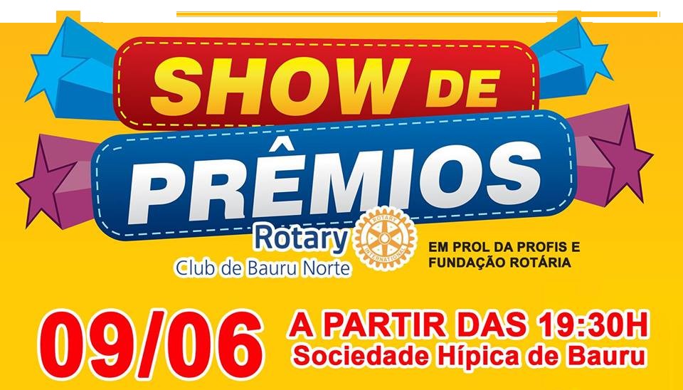 O Rotary Club de Bauru Norte, promove um show de prêmios nesta quinta-feira, 09/06.